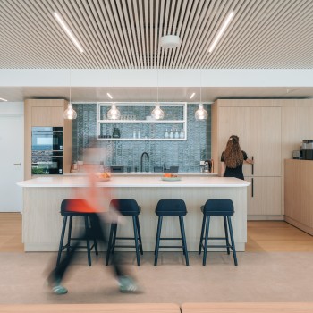 Throughout the space, refined blue accents subtly echo BRG’s visual identity, adding depth without distraction.